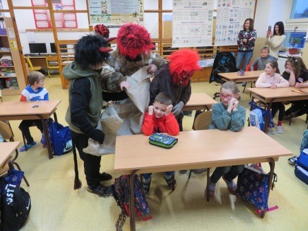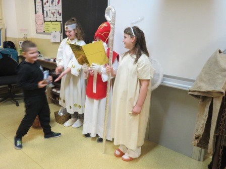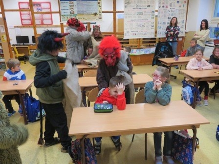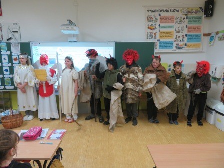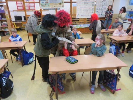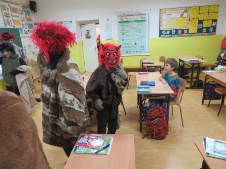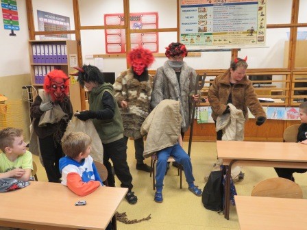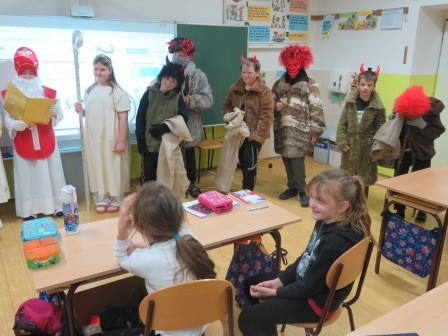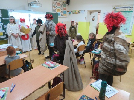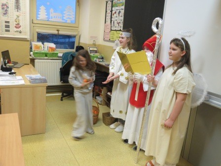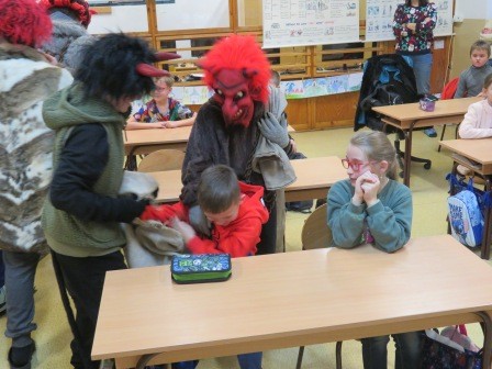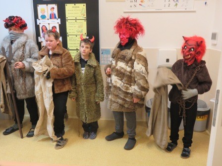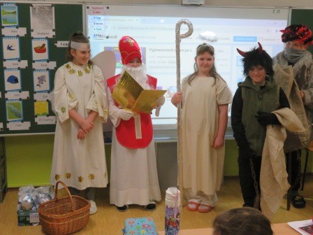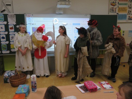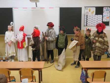 V pátek 5. prosince naši školu navštívil svatý Mikuláš s andílky a početnou skupinou čertíků a přinesli dětem nadílku.